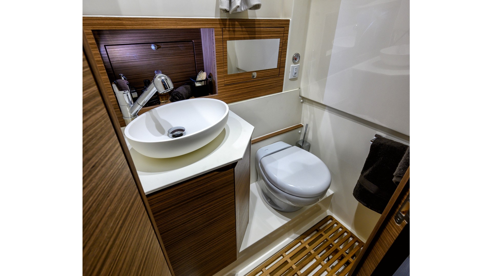• Salle de bain séparée : lavabo, douche, WC nautique